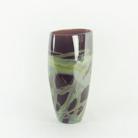 Our hand blown art glass Flat Taper shaped vases are a more modern version of our Classic vases; forms dating back to Greek standards of beauty, incorporating a narrow base and broad shoulders, appearing to float off the table.
